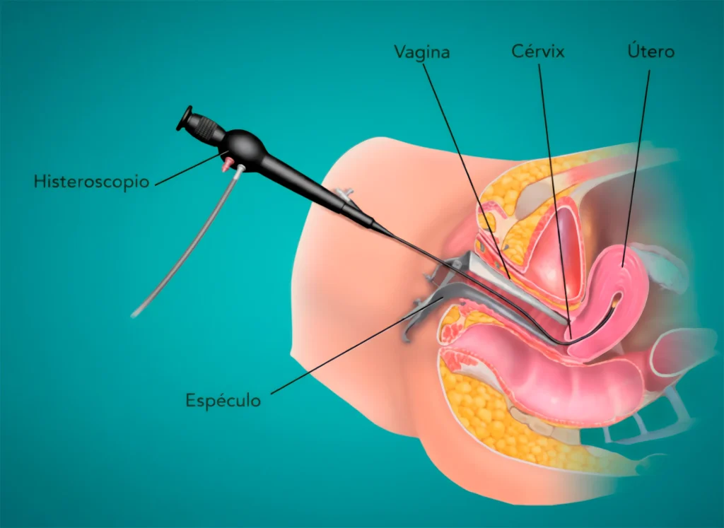 Durante la histeroscopia se introduce una lente muy delgada conectada a una cámara a través de la vagina, el cuello del útero, hasta llegar a la cavidad uterina, lo que permite al especialista visualizar en tiempo real el interior del útero.
